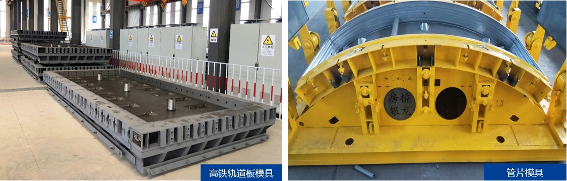 精密鋼膜是保證高鐵軌道板、軌枕、隧道管片、風(fēng)電混塔塔片、裝配式建筑構(gòu)件等混凝土預(yù)制件各部位尺寸和形位精度的關(guān)鍵裝備。銀龍組建集研發(fā)設(shè)計(jì)、生產(chǎn)制造和安裝服務(wù)為一體的技術(shù)團(tuán)隊(duì),建設(shè)大型機(jī)加工車間、組焊車間、組裝車間,配置數(shù)控激光切割機(jī)、數(shù)控車床、數(shù)控加工中心等數(shù)十套高精裝備,用于生產(chǎn)軌道板、軌枕、管片等精密模具,加工精度可達(dá)0.01mm,已向國(guó)內(nèi)外多家預(yù)制構(gòu)件廠提供了數(shù)千套高精模具。