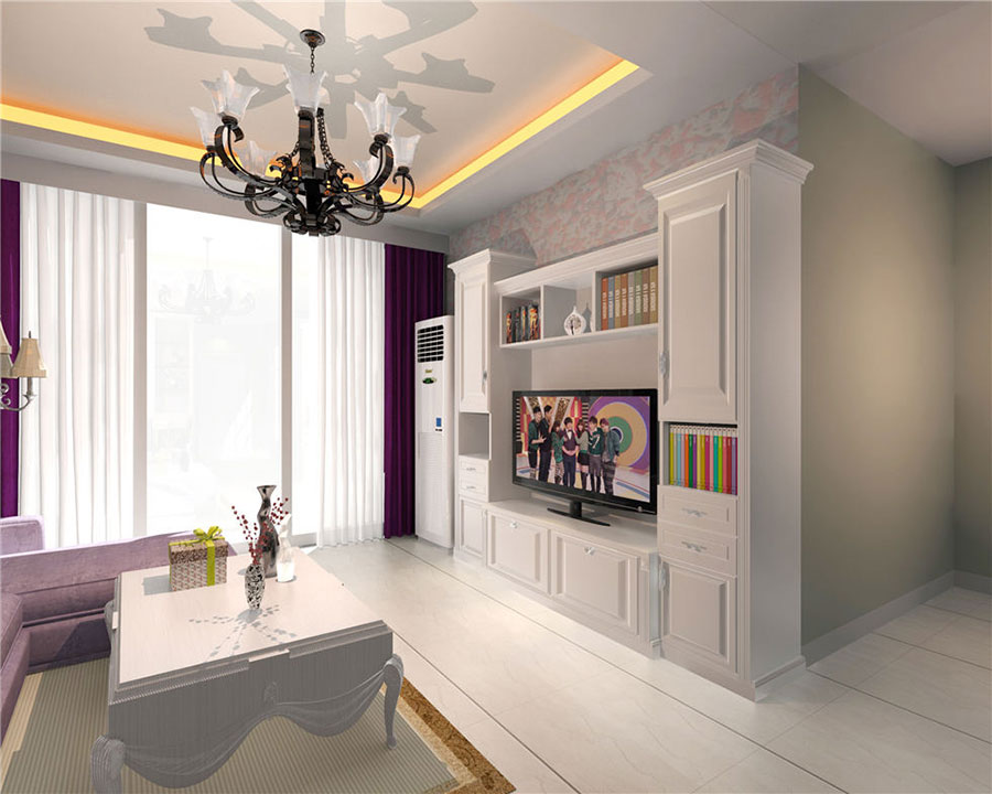 入眼處,便被精致的吊燈所吸引,饒有設(shè)計(jì)質(zhì)感的造型,純黑色的金屬質(zhì)感,與整體的雅白色交相呼應(yīng),整體布局更顯和諧與優(yōu)雅。燈光下,雅白色的電視柜與背景墻形成明顯的色彩反差,給人眼前一亮的感覺。