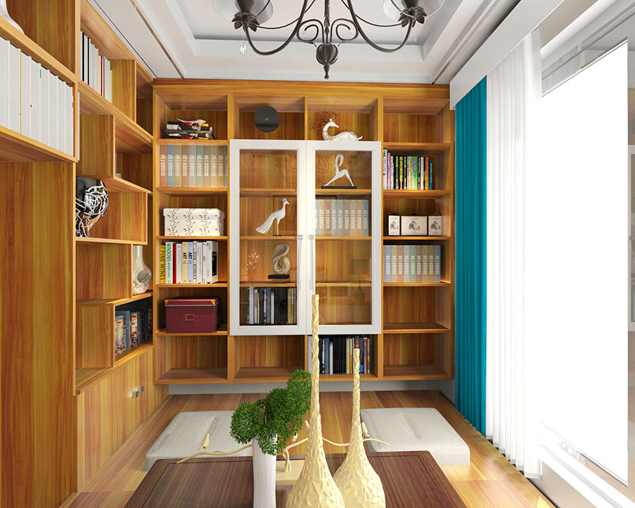 轉(zhuǎn)角式書柜造型,在擴(kuò)大收納面積的同時,也為格局增添了一種神秘感。整體布局采用原木色系,營造出一種質(zhì)樸的整體氛圍,讓您更好地回歸自然。
